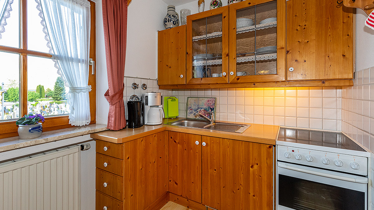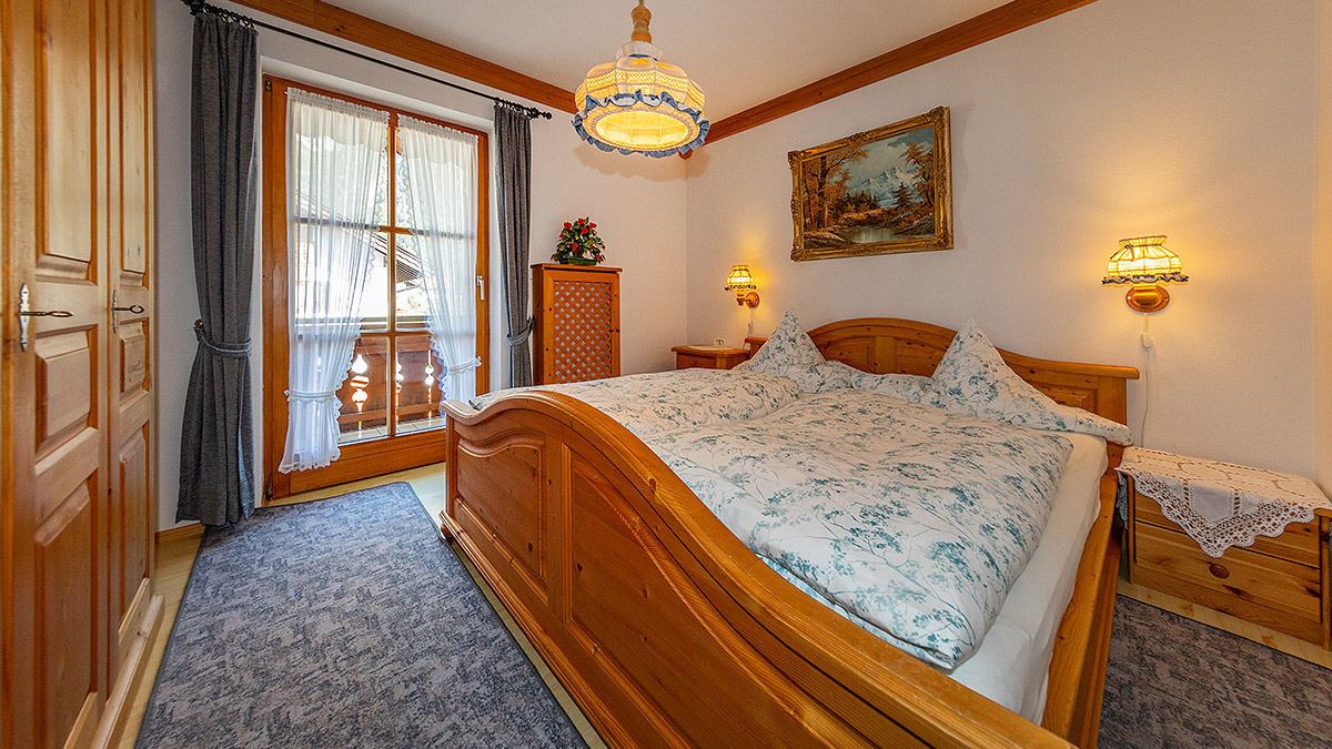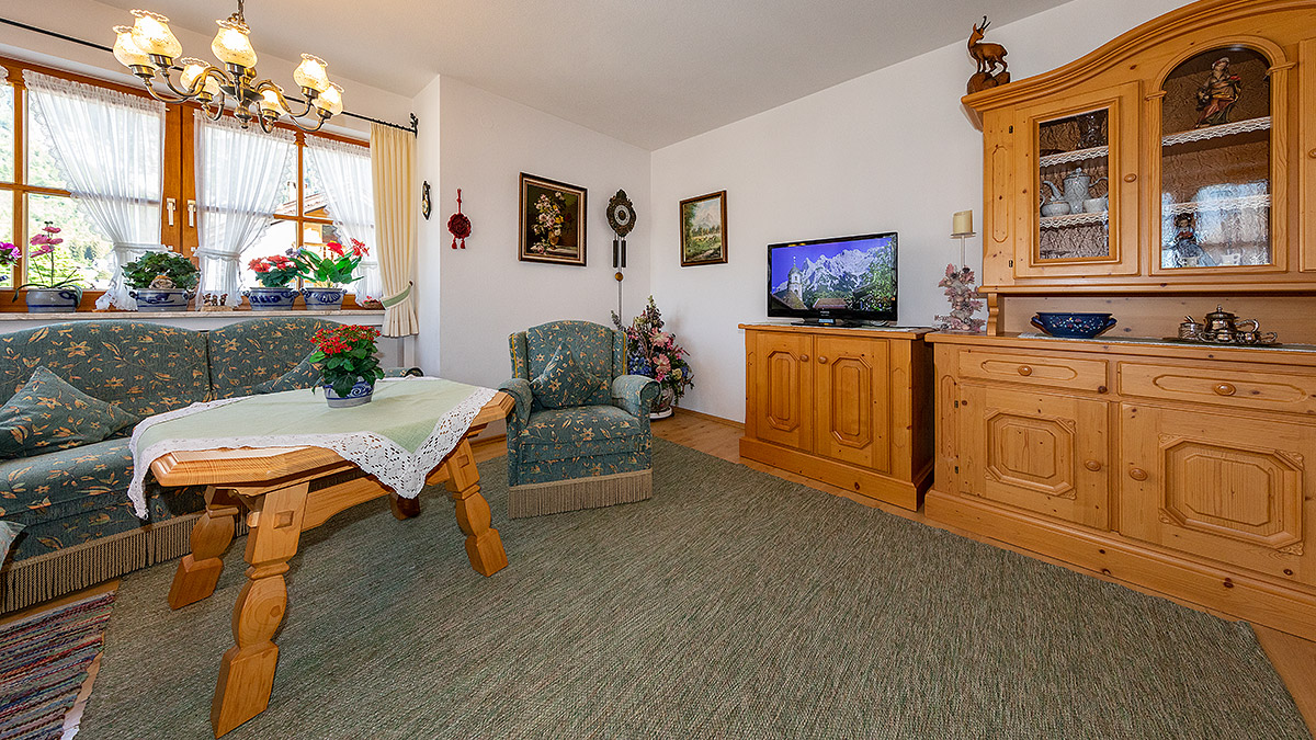 Unsere Ferienwohnung Soiern für 1 - 4 Personen besteht aus Wohnzimmer, vollausgestatteter Wohnküche mit Backofen, Schlafzimmer, Bad/WC und 2 Balkone mit Blick zum Karwendel. Schlafgelegenheit für 3. und 4. Person.