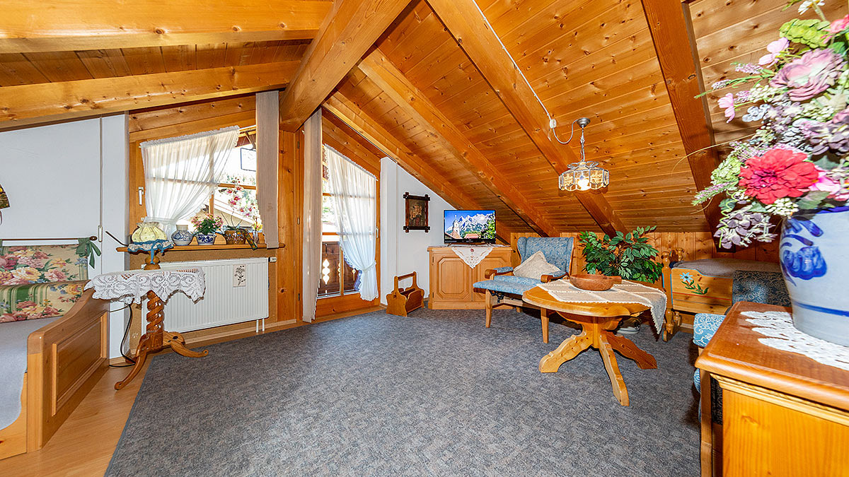 Ferienwohnung Wetterstein (Dachgeschoß, 1 - 3 Pers.) 55,- Euro pro Tag (2 Pers.)