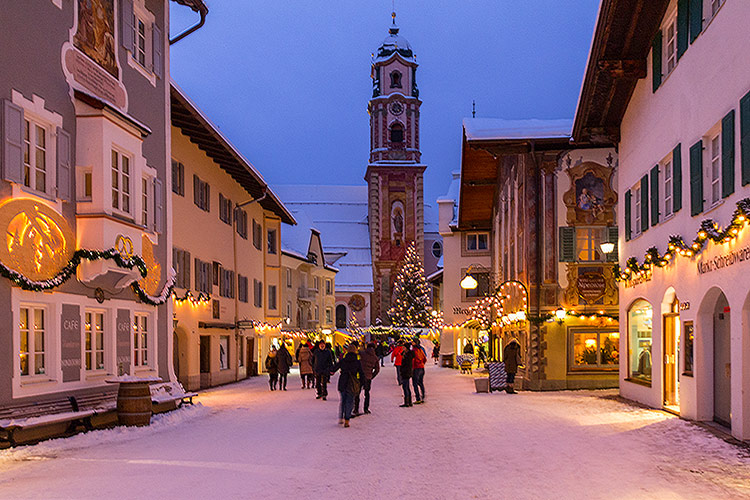 Mittenwalder Obermarkt (Fußgängerzone) im Winter